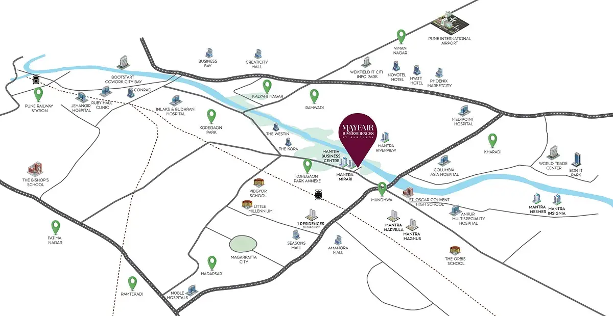 Introducing Mayfair River Residences, a landmark in Upper Koregaon Park, designed for connoisseurs of fine living. Set against the backdrop of the river, this premium offering from Burgundy encapsulates world-class design, unparalleled amenities, and an elevated lifestyle experience.